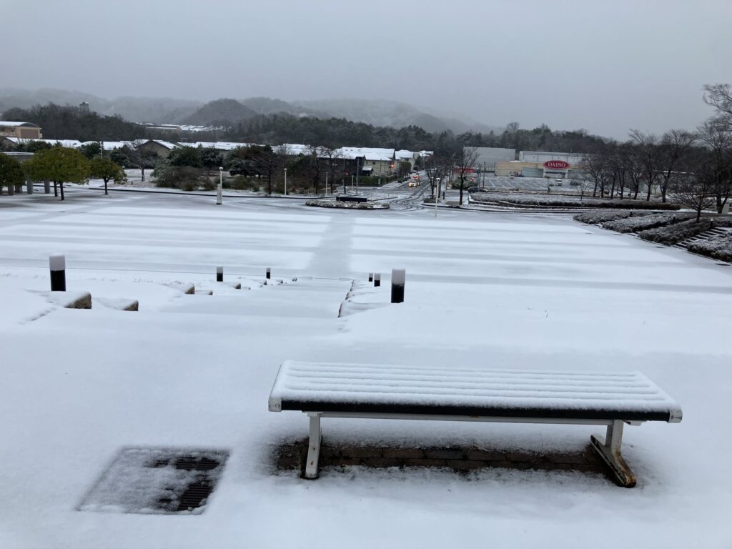 公立鳥取環境大のキャンパスでは積雪が観測されました。