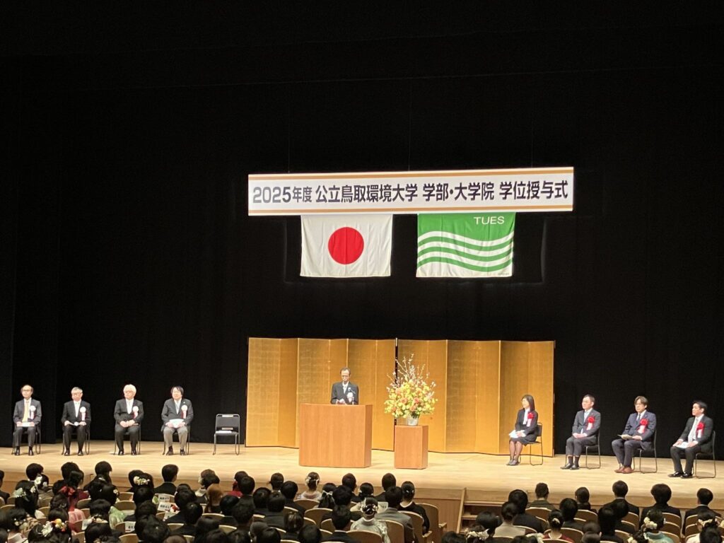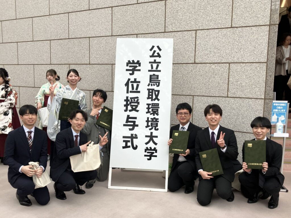 2025年度公立鳥取環境大学 学位授与式が行われました。 2026年3月19日 最終更新日時 : 2026年3月19日 AI_lab令和8年3月19日(木)午前10時からとりぎん文化会館 梨花ホールにて学位授与式が行われました。本ゼミからは経営学部7名、環境学部4名の合計11名が学位を授与されました。ご卒業どうもおめでとうございます。皆さんのご健勝とご活躍をお祈りしております。